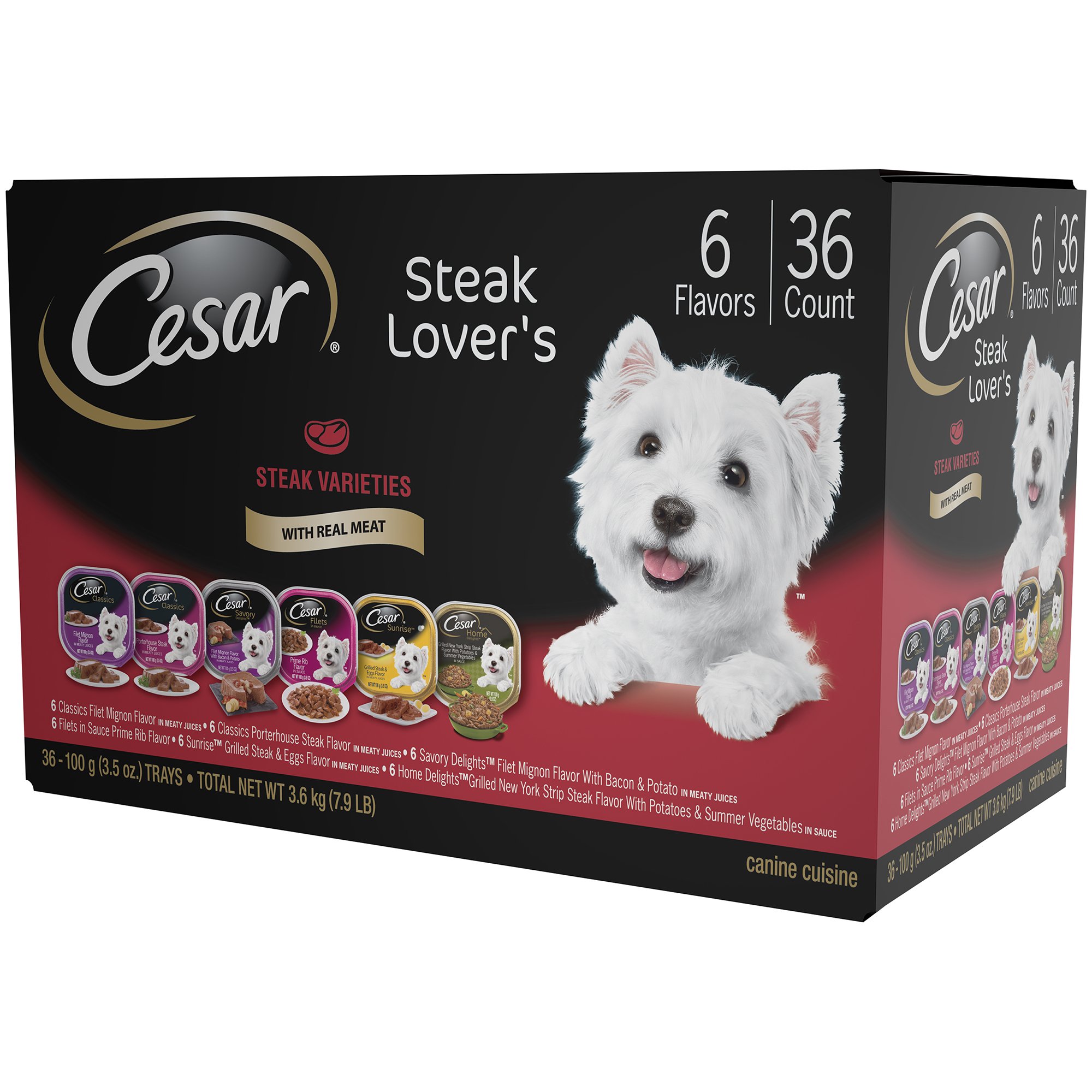 Cesar Wet Dog Food Variety Pack - Cesar Gourmet Wet Dog Food Variety Packs - 36 Trays | Pets - (15) filet mignon flavor, (15) porterhouse steak flavor, (15) grilled steak & eggs flavor, (15) beef recipe satisfies even the pickiest eaters with deliciously meaty flavors in an irresistible soft dog food loaf and tasty sauce